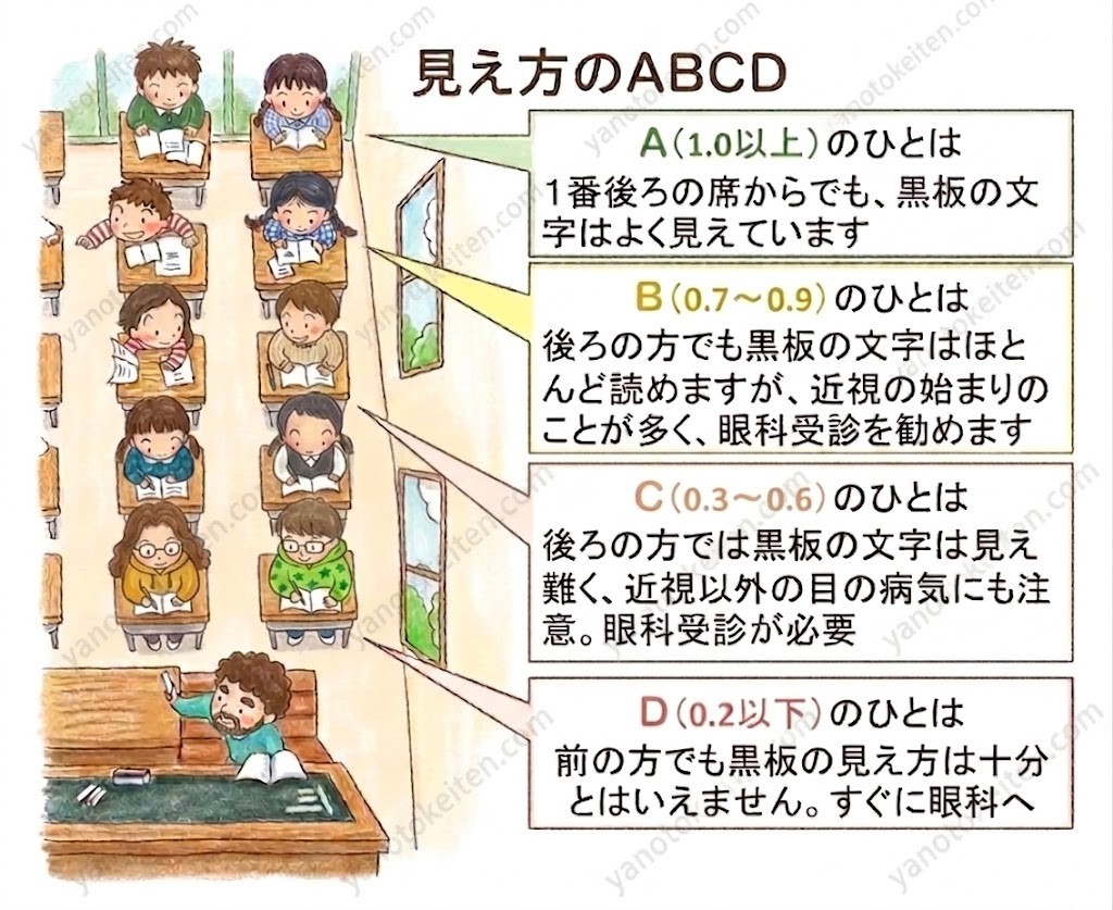 学校の検診で C・D 判定の紙を持ち帰って、眼科さんが混み合うのは毎年のこと。